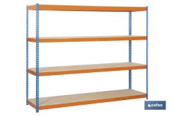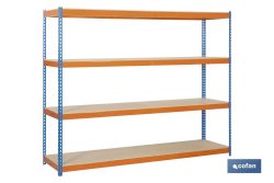 PRATELEIRA DE CARGA MÉDIA AZUL/LARANJA 4 PRATELEIRAS DE MADEIRA 2000 X 1800 X 600 MM