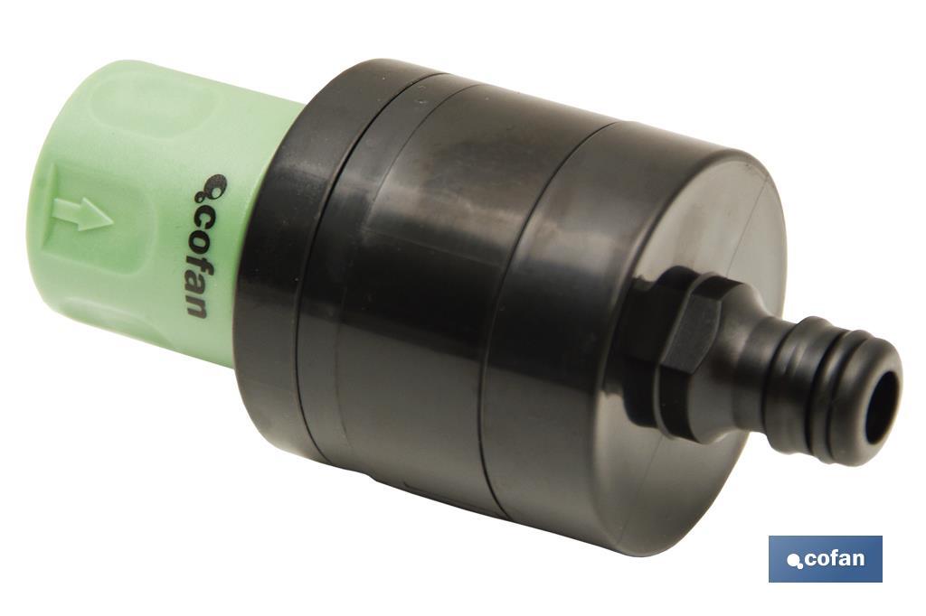 Adaptador modelo Waterdancing para qualquer aspersor universal. Este processo economiza mais de 25 % de água, devido a que deita água a cada certo tempo. Melhora a absorção de água para as plantas, as flores ou a relva. Este adaptador é para unir a mangueira com o aspersor, desta maneira a rega sai através de impulsos economizando água. Está fabricada em polipropileno de alta qualidade.