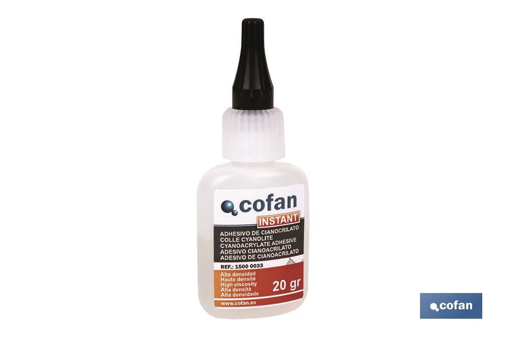 Cola adesiva instantânea de cianoacrilato transparente de média viscosidade 50 g. Cola instantânea 50 g. ADESIVO DE CIANOCRILATO de média viscosidade, especial para madeira, em embalagens de 50 gramas. Provoca irritação grave na pele e nos olhos. Pode provocar irritação das vias respiratórias. Manter fora do alcance das crianças. Não respirar vapores. Não pode entrar em contacto com os olhos, a pele ou a roupa. Adere à pele e aos olhos em segundos. Contém etil ciano.