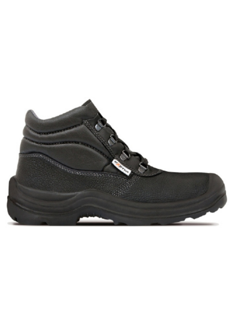 Preto, S3, biqueira em policarbonato e palmilha têxtil anti-perfuração.