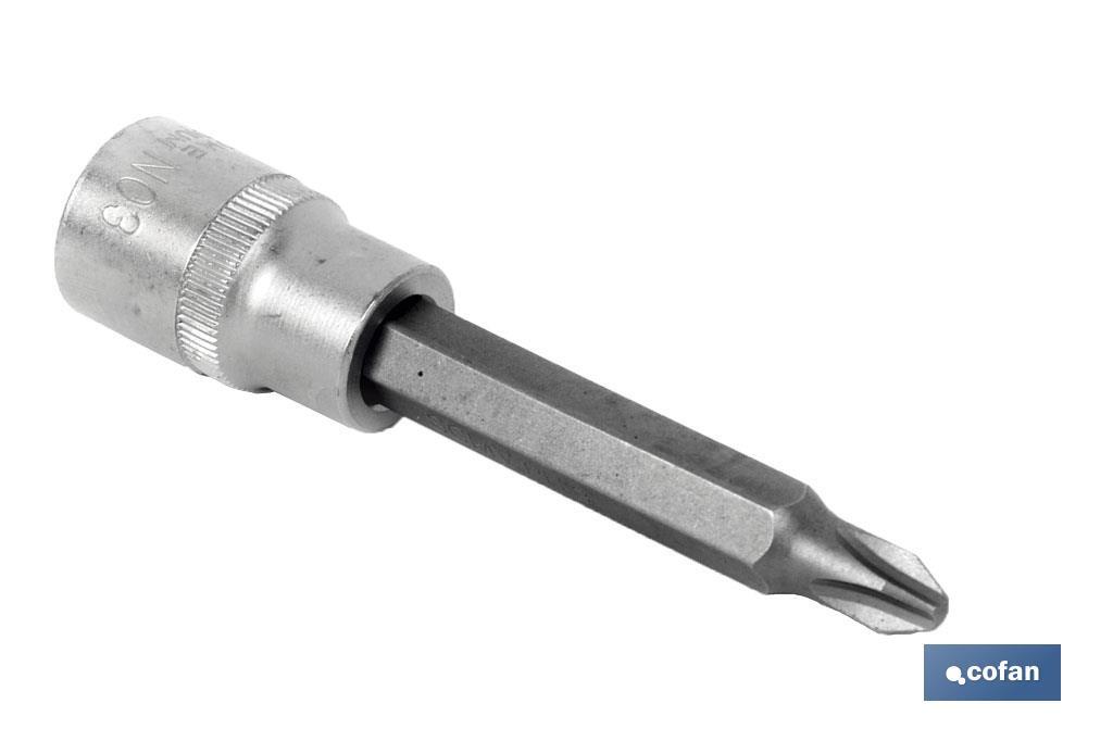 Soquetes 1/2′ Cromo vanádio com ponta longa 65mm Phillips de PH-2 a PH-3
