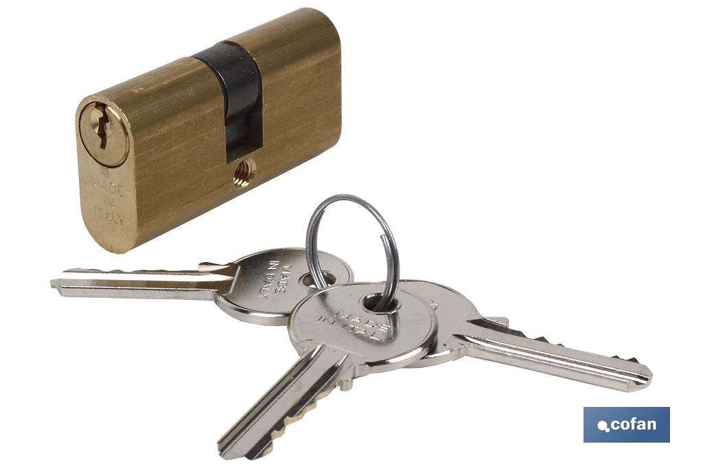 CILINDRO OVAL EUROPEU COM CHAVES IGUAIS, FABRICADO EM AÇO E LATÃO. PROJEÇÃO EM AÇO AUTOLUBRIFICANTE. MOLAS EM BRONZE FOSFOROSO. 5 PITÕES DE LATÃO. COMPATÍVEL COM PROTECÇÃO ANTI-BROCA. 3 CHAVES.