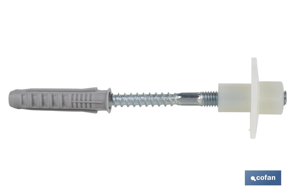 Conjunto de 2 peças de parafusos com porca de nylon adequados para lavatório. Estas buchas são utilizadas para fixar lavatórios e permitem uma instalação rápida e fácil.São adequados para uma vasta gama de materiais, tanto ocos como sólidos: betão, betão leve, bloco de betão oco, pedra natural, tijolo maciço, tijolo oco e madeira.Estas peças são compostas por um parafuso longo de aço inoxidável e uma bucha de nylon. Os elementos de nylon e de borracha são muito resistentes aos produtos químicos e à humidade.Disponíveis em dois tamanhos: Ø8 mm e Ø10 mm de diâmetro com comprimentos de 100 mm e 120 mm.