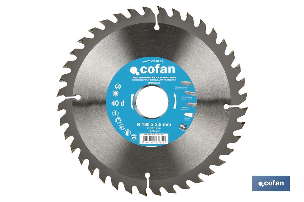 DISCO DE SERRA CIRCULAR PARA MADEIRA Ø180 X 2,5 X 30 MM, 40 DENTES