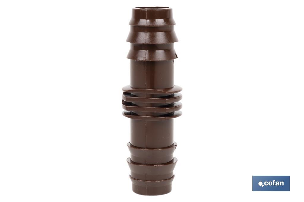 Conector recto para rega por gota ideal para agricultura e jardinagem. O seu design nervurado permite fácil montagem, sem necessidade de ferramentas adicionais, unindo troços de mangueira sem risco de fugas. Graças ao conector com forma recta, diferentes tipos de combinações podem ser realizados, adaptando-se a diferentes tipos de rega. Este produto é perfeito para fazer combinações nas conexões de um sistema de irrigação. O uso de ligações em forma recta é essencial para gerar circuitos funcionais em sistemas de irrigação para o campo da agricultura e jardinagem. O seu material é resistente e confere ao produto resistência suficiente para ser funcional em cenários onde as condições ambientais são adversas.