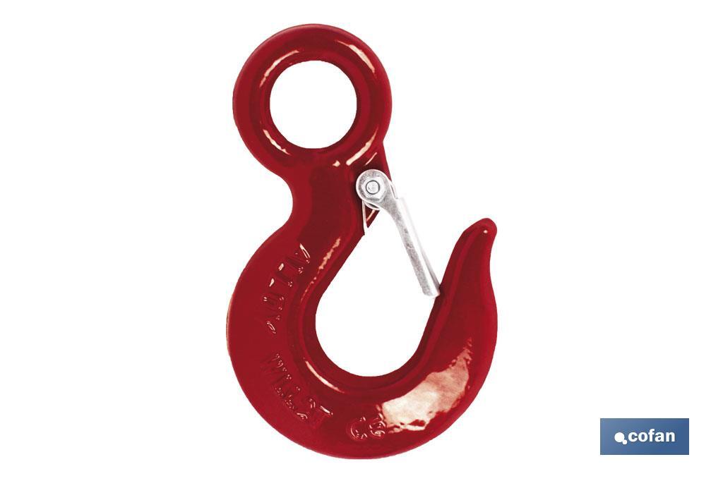 Gancho com segurança adequada para trabalhos de elevação desde 1.000 até 11.000 kg. Corpo de alta resistência de liga de aço enriquecido de carbono.