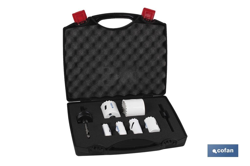 Conjuntos de serras craneanas bimetálicas Eletricista com 6 serras craneanas e 2 adaptadores.