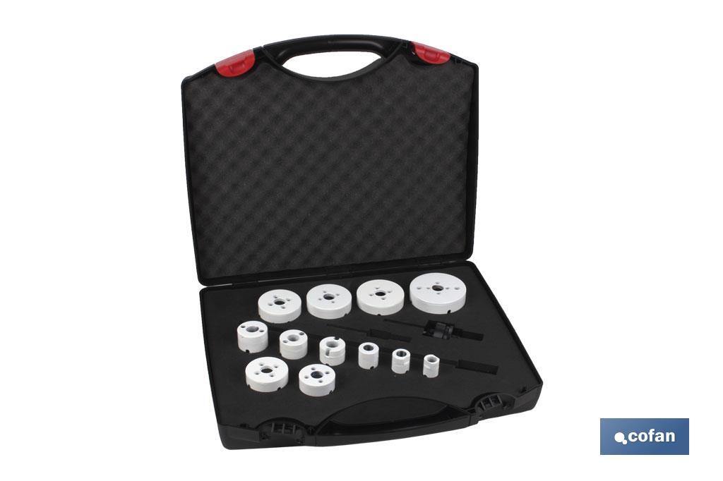 Conjuntos de serras craneanas bimetálicas Industrial com 12 serras craneanas e 2 adaptadores e extensor.