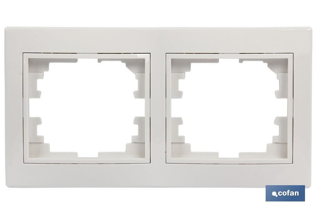 Cuadro para mecanismos elétricos de embutir de 2 elemento. Branco e preto. Dimensões: 155 x 85 x 20 mm.