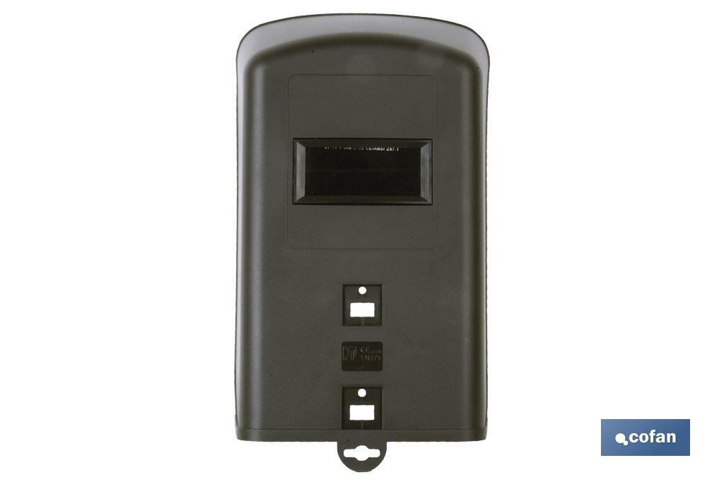 Máscara manual de soldadura, ergonómica, facilmente ajustável, dupla proteção, viseira basculante, DIN 11, electrónica. Uso: todo o tipo de soldadura