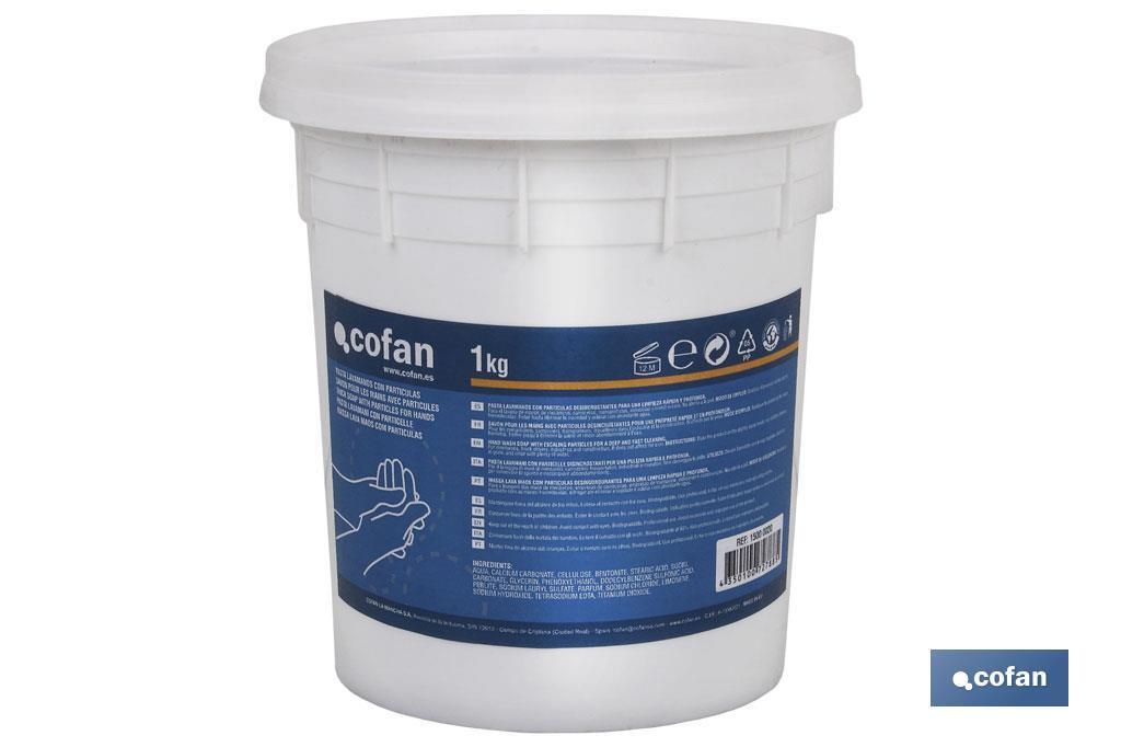 Massa lava mãos com partículas 1 kg contém partículas de descalcificação para uma limpeza rápida e completa das mãos.