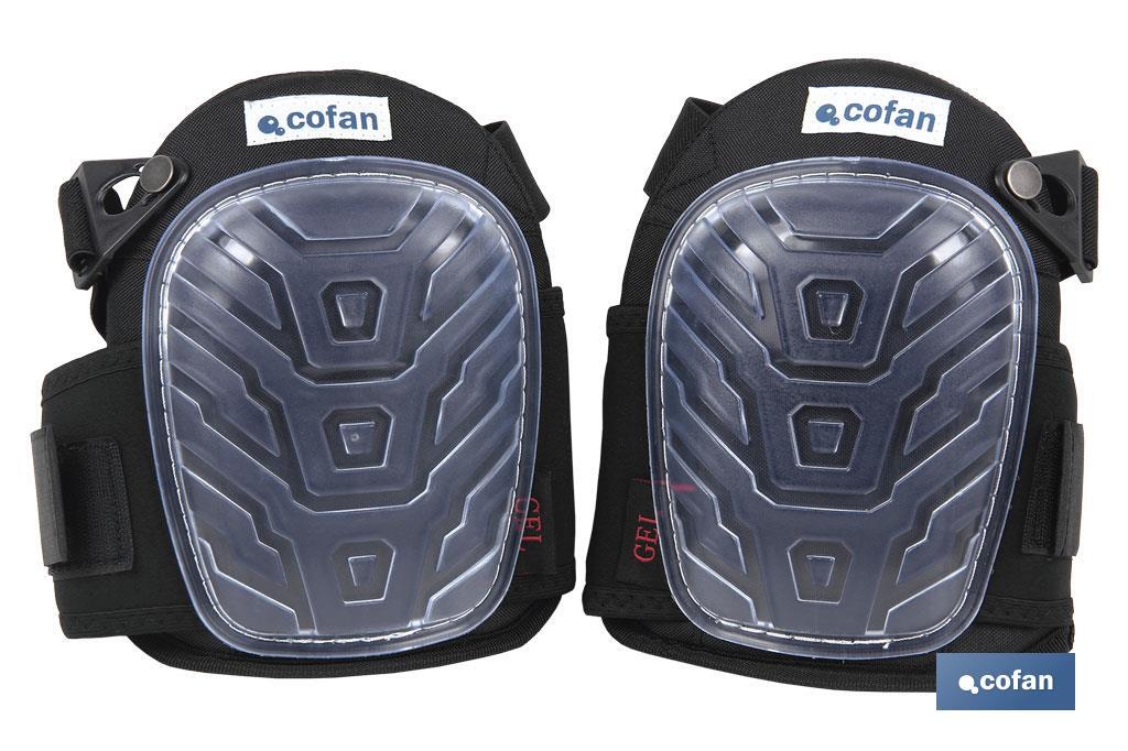Joelheiras de gel com duplo elástico ideal para longos períodos de trabalho. Muito confortável e fácil de ajustar graças às suas duas bandas elásticas.