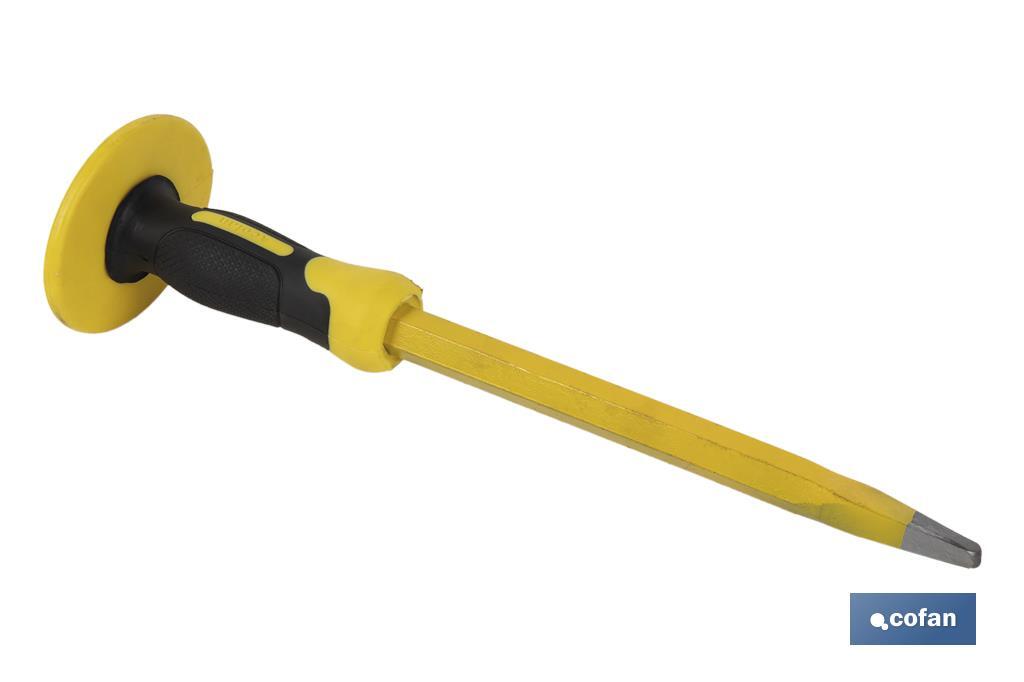 Punção para construção com punho protetor. Medidas de 16x200mm a 20x500mm.
