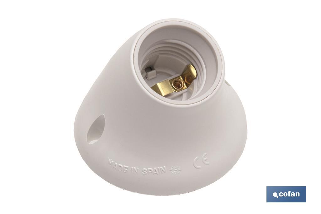 Porta lâmpadas E-27 de superficie ou parede. Soquete curvo e Cor Branca. Aplicações habituais do entorno doméstico, escritórios e comércios. 4 A 250 V. Máx. potencia: 75 W.
