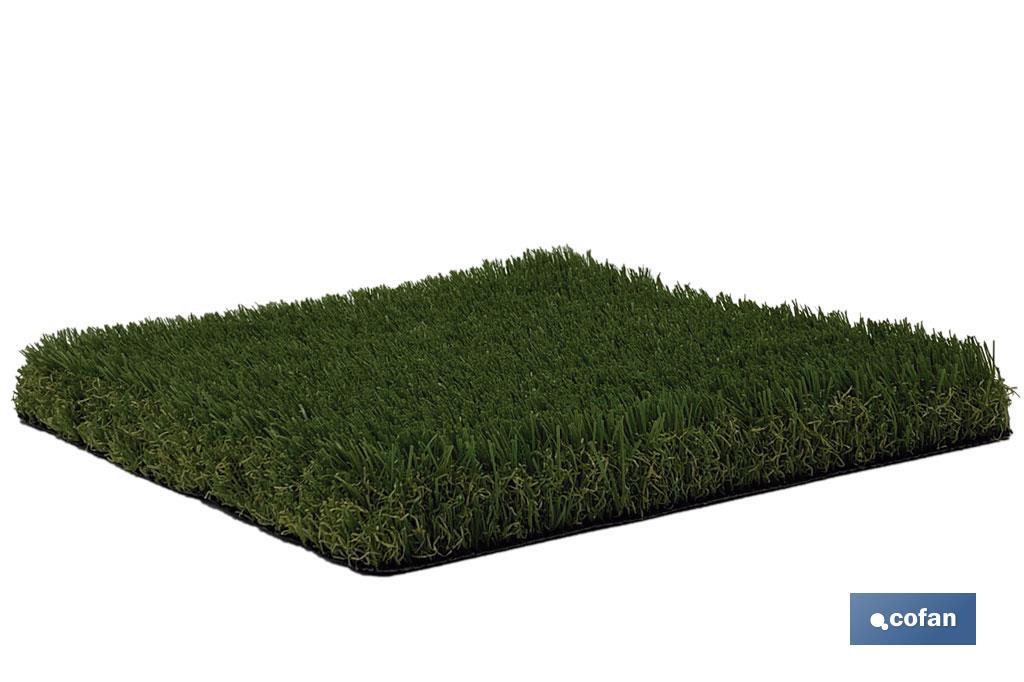 Relva artificial bicolor verde esmeralda e oliveira escura, fabricada com monofilamento de polietileno de fibra encaracolada e polipropileno com um suporte de látex e fibra curta de polipropileno. Proteção extrema contra os raios UVA, fabricada com componentes químicos que não são perigosos para as pessoas. Válido para desporto com previa autorização / certificação prévia e para zonas residenciais e de uso doméstico com crianças e adultos. Não é tóxico e pode ser reciclado quando substituído. Fácil de limpar.Com o início do verão e o bom tempo, as vendas de relva artificial explodiram. E é um complemento essencial para o paisagismo de terraços, jardins, parques infantis e piscinas, uma vez que muda o seu estilo criando um ambiente mais estival e agradável. Além disso, com a relva artificial reduz o consumo de água e energia, entre muitas outras vantagens.