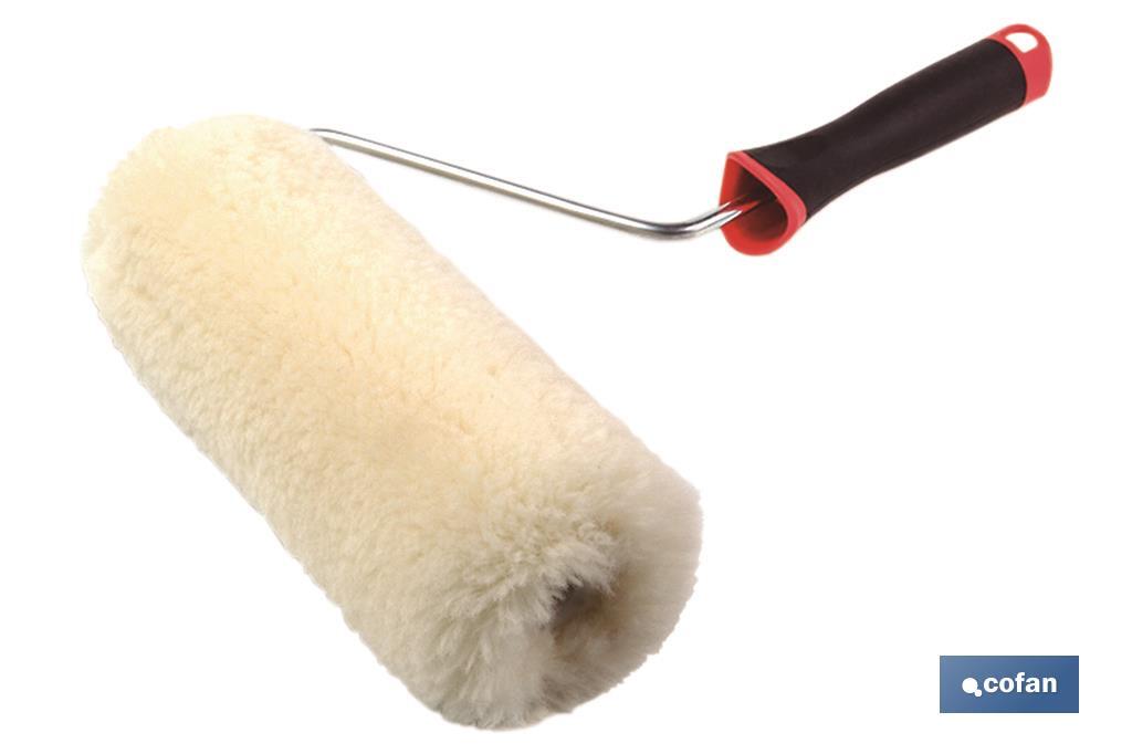 Rolo de lã natural com cabo incluído. É usado especialmente na aplicação de tintas em áreas exteriores, embora possa ser usado também para interiores indistintamente. O seu acabamento arredondado aliado aos seus materiais de qualidade fazem do rolo a solução perfeita para acabamentos de qualidade profissional.